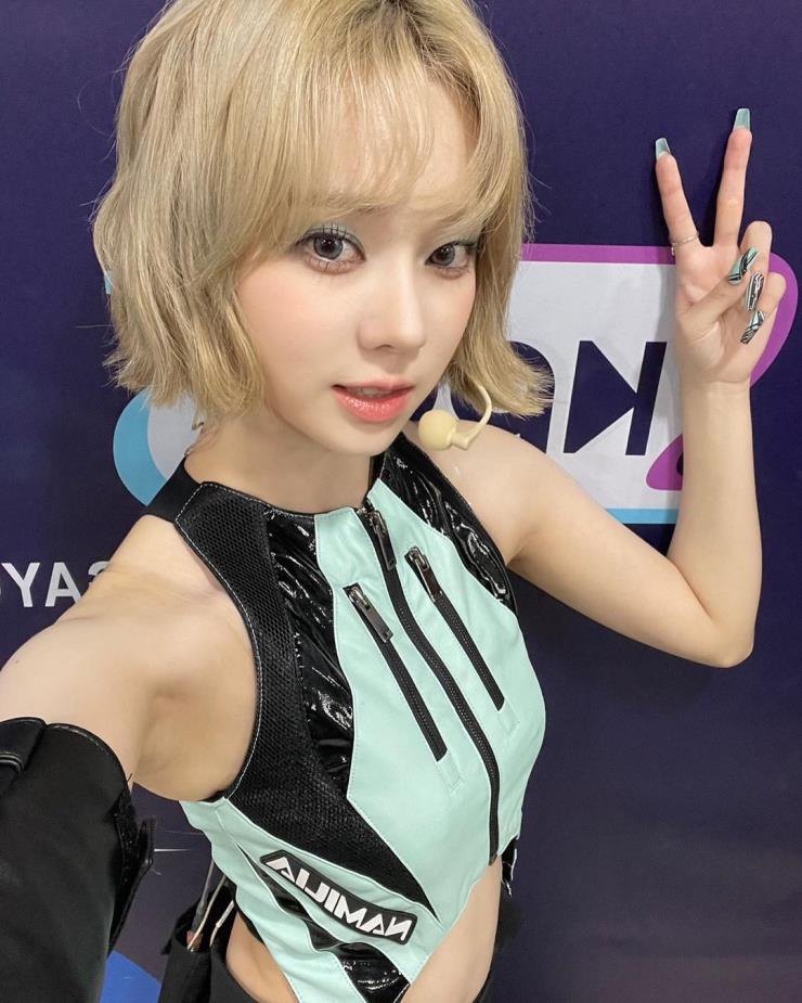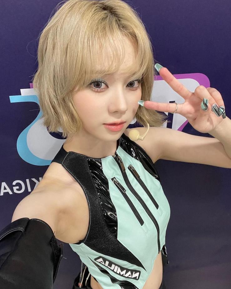 요즘 대세 컬러인 ‘핑크’ 메이크업을 완성한 스테이씨 수민. 속눈썹은 한 가닥에 여러 개를 붙여 또렷하게 강조해줬고, 얇게 뺀 아이 라인 위에 오렌지빛이 도는 핑크 컬러를 더해준 것. 거기에 왼쪽 눈 아래엔 하이라이터를 얹어 입체감 있는 애굣살을 만들어주고, 오른쪽 눈은 눈 앞머리 부분에 발라 보다 깊이 있는 눈매 완성!