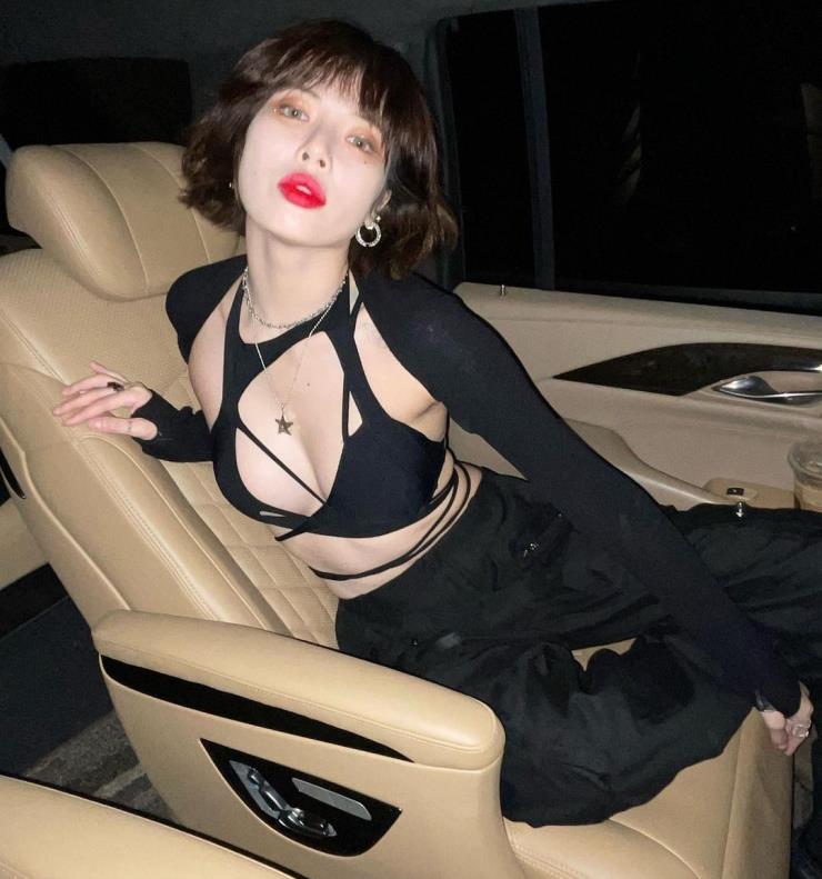 브라운 컬러를 절대 포기하지 못한다면, 현아의 메이크업 룩을 참고해보자. 아이라인과 언더라인 모두 브라운 컬러를 이용해 길게 뺐지만, 한 듯 안 한 듯 연하게 그린 것. 그리고 오렌지 브라운 컬러를 눈 위부터 아래까지 1차로 뭉침 없이 자연스럽게 펴 발라주고 눈 윗부분은 시머한로즈 브라운 컬러로 한 번 더 깔아줘 깊이감을 더했다. 여기에 그레이 렌즈와 레드립을 더하면 치명미 뿜뿜!