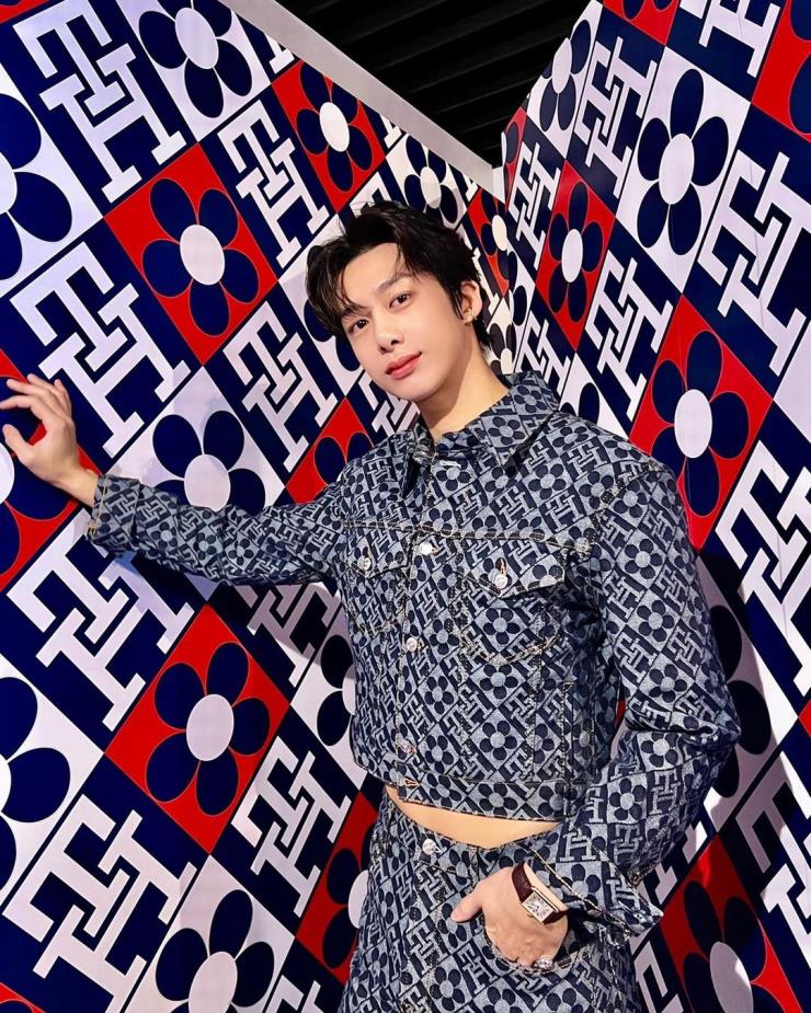 형원은 은근한 노출을 선택했다. 몸의 라인이 모두 드러나게 딱 핏 되는 데님 재킷과 팬츠를 픽! 여기에 재킷의 기장을 크롭으로 만들어 은근~하게 복근을 드러내 절제된 섹시미를 강조했다.