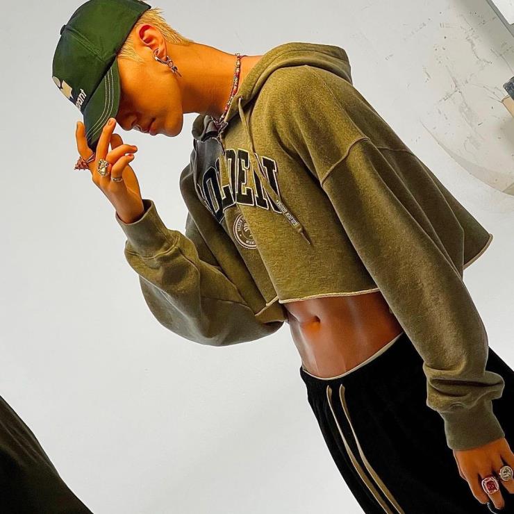 크롭 티셔츠는 여자의 전유물? 노노~ 호시는 과감한 크롭 기장의 후드 패션을 선보였다. 호시의 100점짜리 복근을 여과없이 드러냈다. 여기에 볼캡, 볼드한 컬러 주얼리를 더해 호시만의 상큼한 무드도 놓치지 않았다는 거~