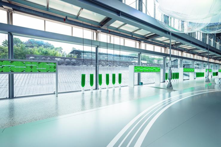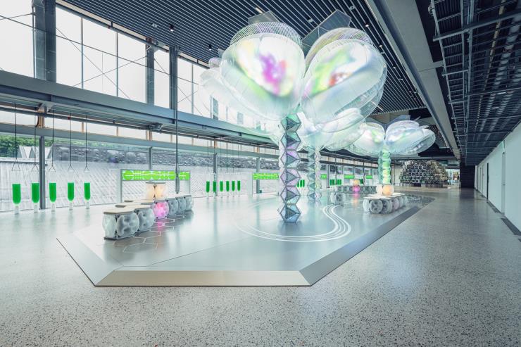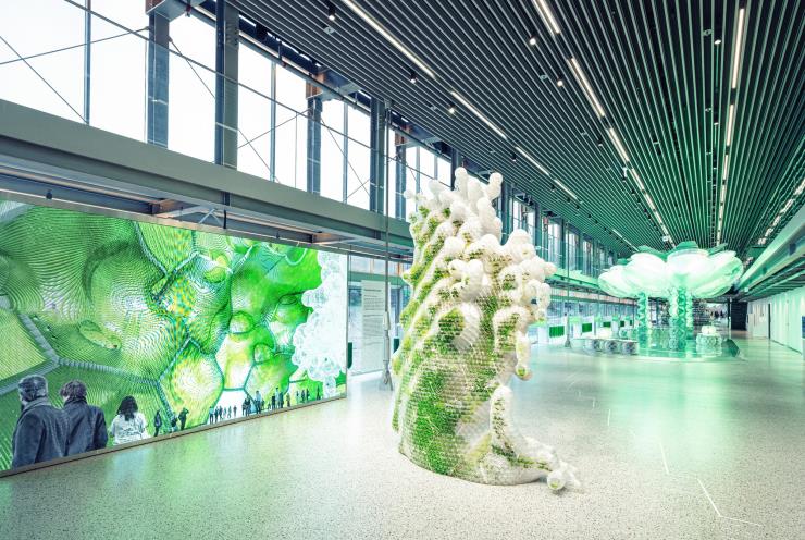 도시 속 빌딩 숲의 오염된 공기를 정화할 수 있는 해결 방안을 제시하는 ‘호루투스 XL 아스타잔틴.g’ 바다 속 산호에서 모티브를 얻은 이 작품은 반투명 뼈대 구조 안에 광합성으로 산소를 만드는 알게가 젤리화되어 들어 있다. 즉, 마치 산호와 같이 광합성을 통해 대기 내 오염을 흡수하고 긍정적 에너지를 전달하는 거대 공기 정화 조형물인 셈!