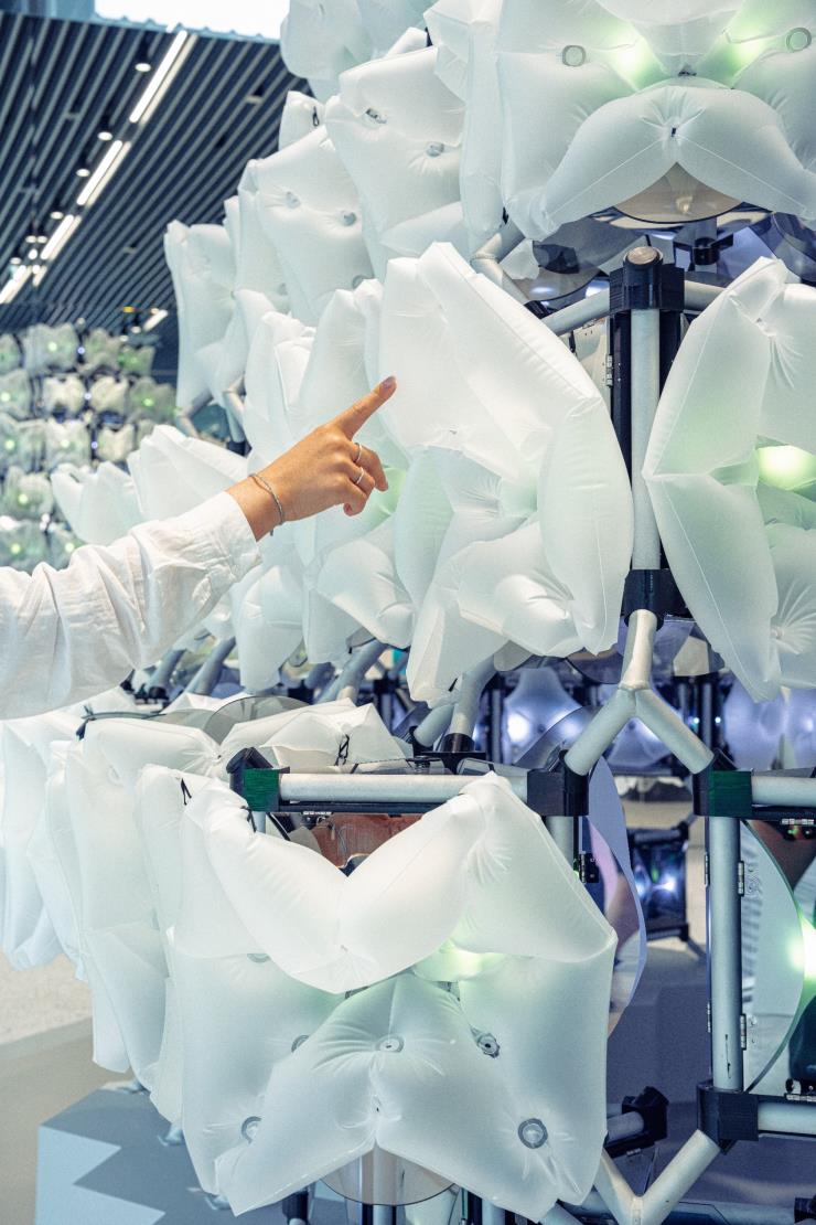 모듈형 로봇 유닛 ‘에어리Air(e)’들의 조합으로 유기체처럼 움직이는 새로운 쉘터 디자인, ‘에어 오브블룸.’ 이 작품은 낮 동안에 태양을 따라 움직이며 태양전지 패널에 작동에 필요한 에너지를 축적한다. 사람이 다가오면 로봇 유닛들이 서로 움직여 필요한 만큼의 공간을 만들고, 휴식 공간을 조성한다. 즉, 사람-사물-기술을 연결하는 지속 가능한 쉘터인 것.