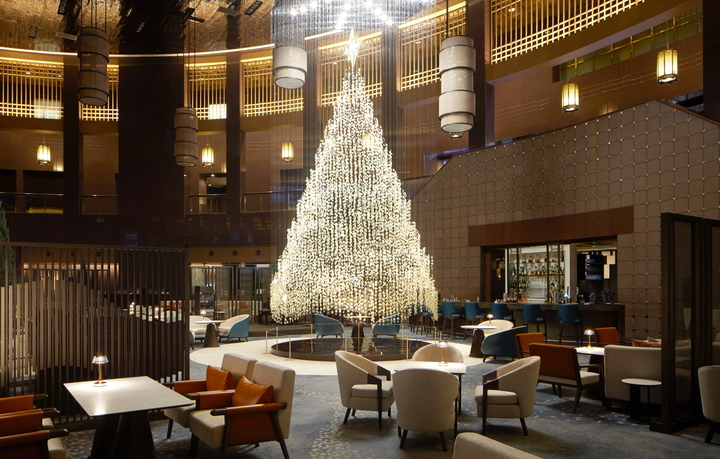 크리스털 장식으로 둘러쌓인 대형 트리가 매년 크리스마스마다 찾아오는 인터컨티넨탈. 올해는 반짝이는 자개 장식 3만 피스로 구성된 7m 크리스마스 트리가 로비 라운지에 장식 되었습니다.