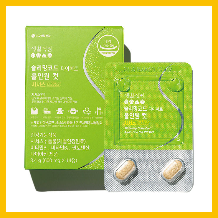 다이어트할 기운 없는 이들에게 딱! 체지방 감소에 도움을 주는 ‘시서스 추출물’을 담은 건강기능식품으로, 에너지 생성과 영양소 대사까지 한 번에 관리해준다.