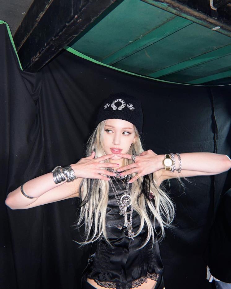 박규리의 메이크업은 심플하지만 강렬한 포인트를 줄 수 있다. 붓펜으로 아이라인을 초초초 슬림하게 그린 뒤 눈꼬리를 빼고, 애굣살부터 삼각존 부위까지 네온 핑크색 섀도를 진하게 칠해 언더라인을 그려준 것. 눈 밑에 눈물처럼 보이는 원형 파츠을 붙여 영롱한 무드가 물씬 느껴지기도 한다. 화룡점정으로 체리 빛이 도는 핑크 립까지 완벽하게 소화하며 레전드 미모 갱신!
