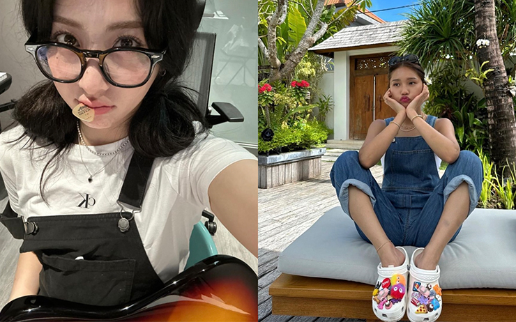 떠오르는 사복 강자 허윤진. 그런지한 니트에 툭 걸쳐준 뿔테 안경이 무심한 듯 세련됐네요.