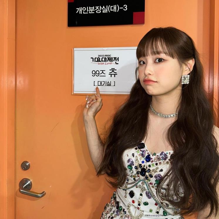 화려하지만 자연스럽게 완성되는 메이크업을 찾고 있다면? 츄의 메이크업을 확인해볼 것. 속눈썹은 뭉쳐 올리고 아이라인은 길게 빼주었다. 눈두덩이엔 연한 피치 톤의 블러셔와 영롱한 글리터를 얹어주고, 언더라인은 오렌지 브라운 컬러의 섀도에 삼각존 부위만 추가로 진한 브라운 컬러를 더해준 것이 특징이다. 츄처럼언더 속눈썹도 살려주면 인형 미모를 완성할 수 있다는 것은 안 비밀.