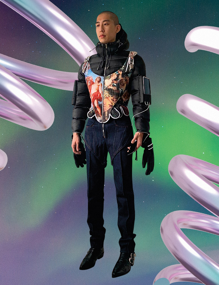 」지난해, 센트럴 세인트 마틴을 졸업한 디자이너 김준태는 한국에서 여성복을 전공하고 영국으로 건너가 남성복을 공부했다. 젠더 플루이드 감성, 동서양의 문화와 다양한 시대가 공존하는 하이브리드적 디자인을 선보이는 그는 졸업 패션쇼를 통해 슈퍼 루키로 떠올랐다. 하지만 이미 학생 때부터 컬렉션을 선보이며 패션계의 주목을 받아 왔다. 재학 시절 참여한 리바이스와의 업사이클링 프로젝트는 두아 리파가 입어 큰 화제가 되기도.