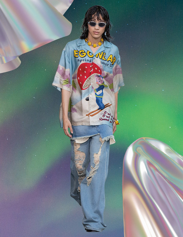 」‘성별 없는’ 패션을 추구하는 플로랑탱 글레마레크와 케빈 노백이 2019년 론칭한 에곤랩. 화가 에곤 실레의 이름에서 따온 ‘EGON’과 ‘남성성의 재해석’이란 실험적 디자인을 창조하는 공간을 뜻하는 ‘LAB’을 결합한 브랜드명이 인상적이다. 지속 가능한 소재로 컬렉션을 제작하는 에곤랩은 2021 ANDAM 패션 어워드 수상 및 2022 울 마크 프라이즈 파이널리스트에 올랐고, 크록스와도 협업을 진행했다. 이번 시즌엔 포멀하고 우아한 룩을, 2023 S/S 시즌엔 캐주얼 감성의 스트리트 룩을 선보이며 여러 스타일을 넘나들 수 있는 재능 넘치는 디자이너들임을 증명했다.