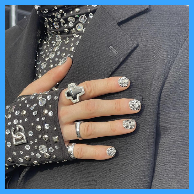 뮤지션들이 가장 화려하게 꾸미고 등장한다는 빌보드 뮤직 어워드. 이를 위해 머신 건 켈리는 다이아몬드를 주얼리가 아닌 손톱에 흩뿌렸다! 평소 네일 아트에 찐 사랑을 드러내며 네일 브랜드 언던 래커(UN/DN LAQR)까지 운영하는 켈리다운 선택이다. 말 그대로 손톱 크기만 한 네일 팁은 2.4mm 사이즈의 작은 10캐럿 다이아몬드로 이루어졌고, 약 4천만원에 달하는 것으로 알려져 놀라움을 자아냈다. 손톱만 4천만원