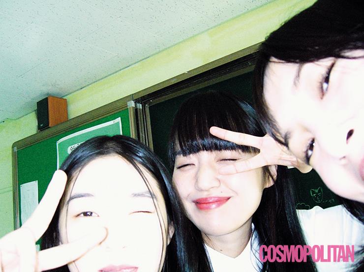 (왼쪽부터, 민규)재킷 가격미정 코스. 셔츠 가격미정 디올. 팬츠 1백82만원 구찌. 스니커즈 9만9천원 컨버스. (루자)재킷 62만2천원 제이쿠. 셔츠 17만3천원, 스커트 17만9천원 모두 데어드. 헤어핀 가격미정 샤넬. 로퍼 1백36만원 미우미우. 양말 에디터 소장품. (소윤)셔츠 35만5천원 아미. 스커트 15만9천원 데어드. 양말 2만2천원 코스. 백팩 15만9천원 월스타일 무브먼트. 스니커즈 6만9천원 반스. 타이 에디터 소장품.