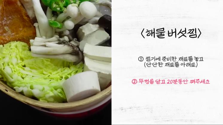 원하는 해물과 버섯을 찜기에 넣고 쪄낸 뒤 계란 노른자 소스에 찍어 먹는 해물 버섯찜! 별다른 손재주 없이도 재료 본연의 맛으로 입맛과 만족감을 모두 충족할 수 있는 좋은 식사다.