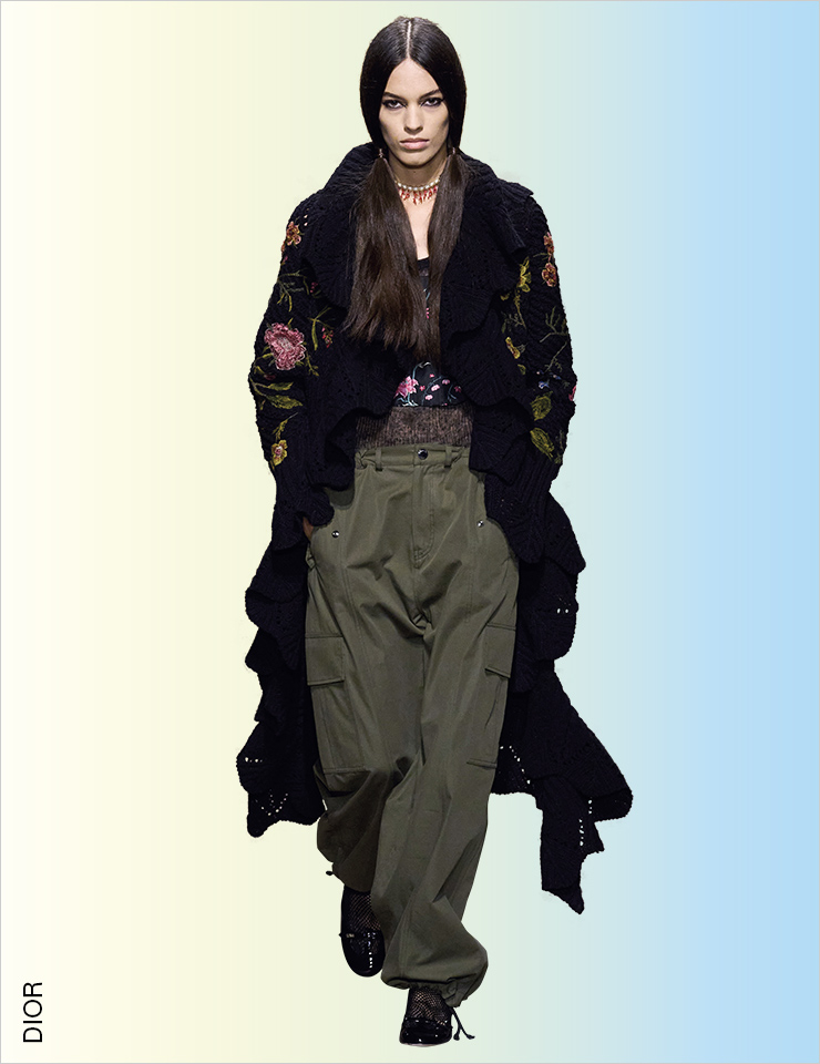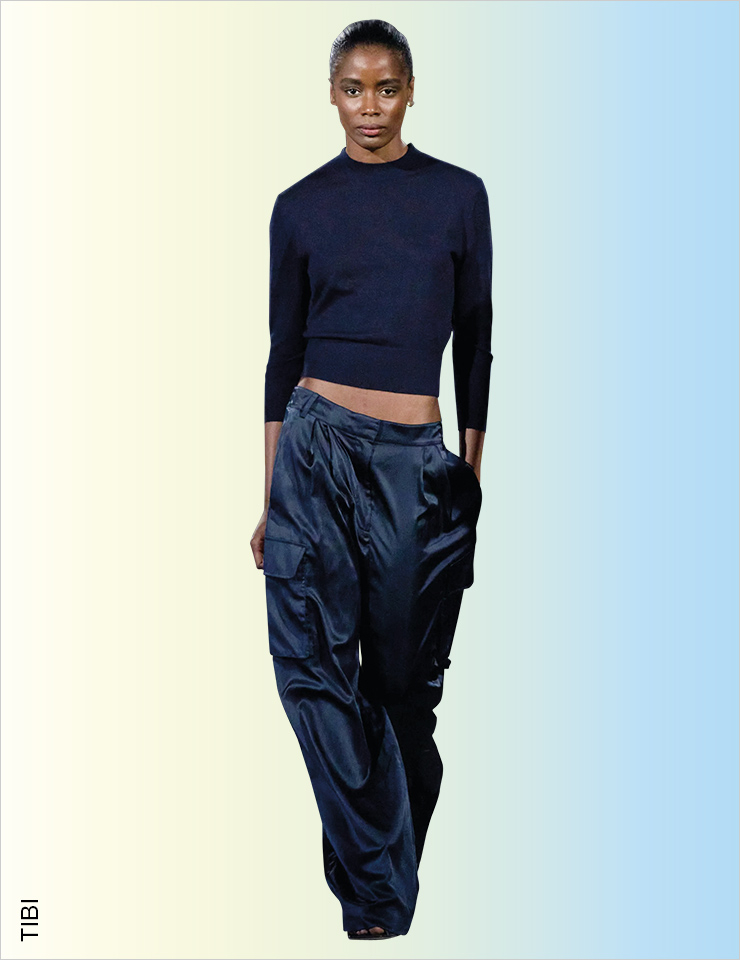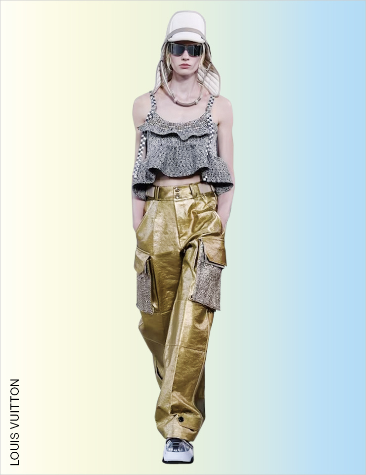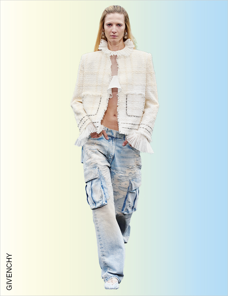 스트리트 감성의 카고 팬츠를 즐기는 가장 쉬운 방법은 Y2K 스타일로 입는 것일 것이다. 하지만 에디터가 선택한 베스트 룩은 우아한 트위드 재킷과 러플 블라우스를 믹스매치한 지방시의 룩! 이처럼 스트리트 풍의 카고 팬츠를 드레시한 아이템과 믹스매치하는 것이 가장 동시대적이다. STREET