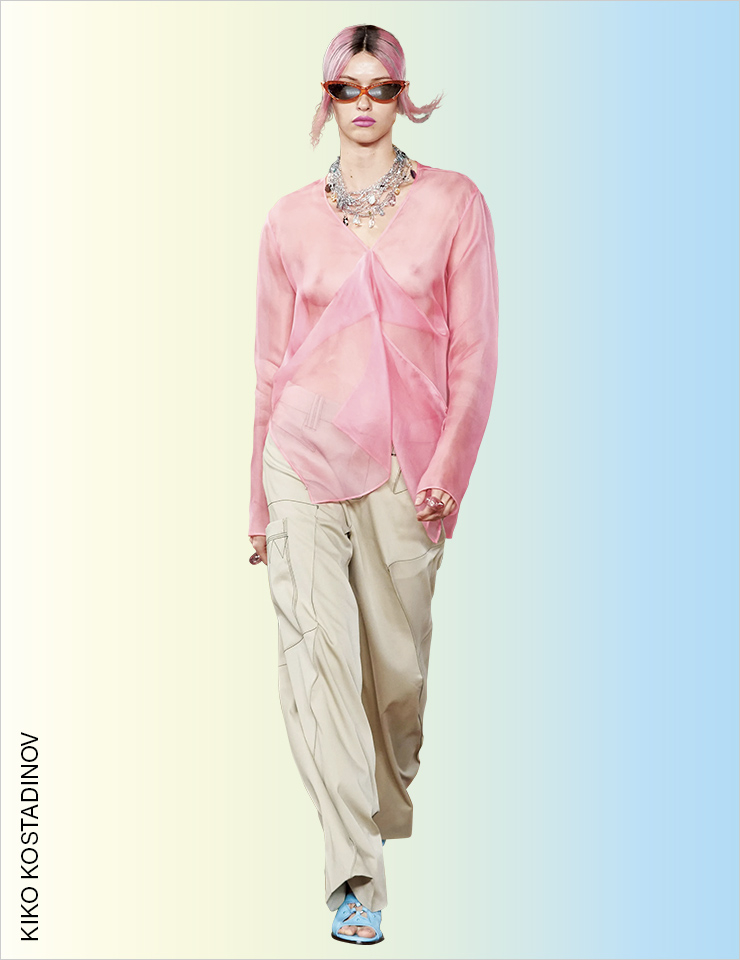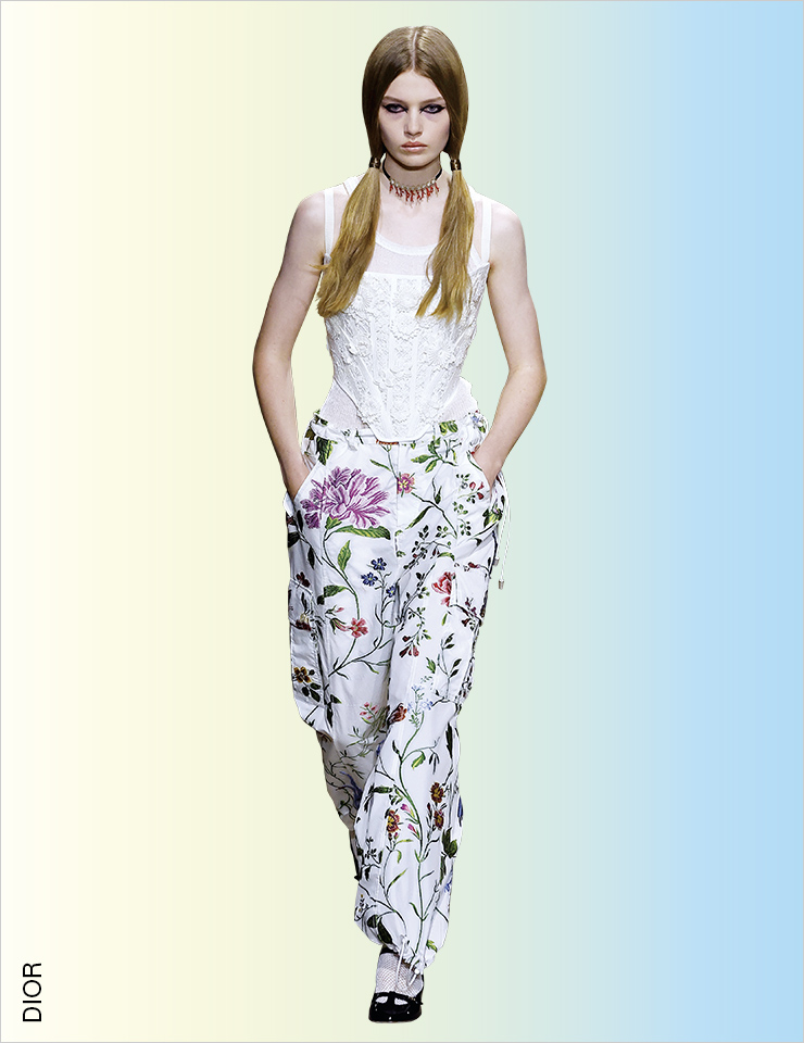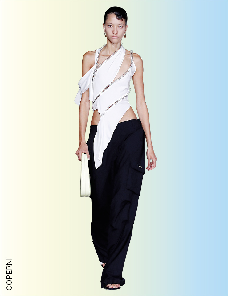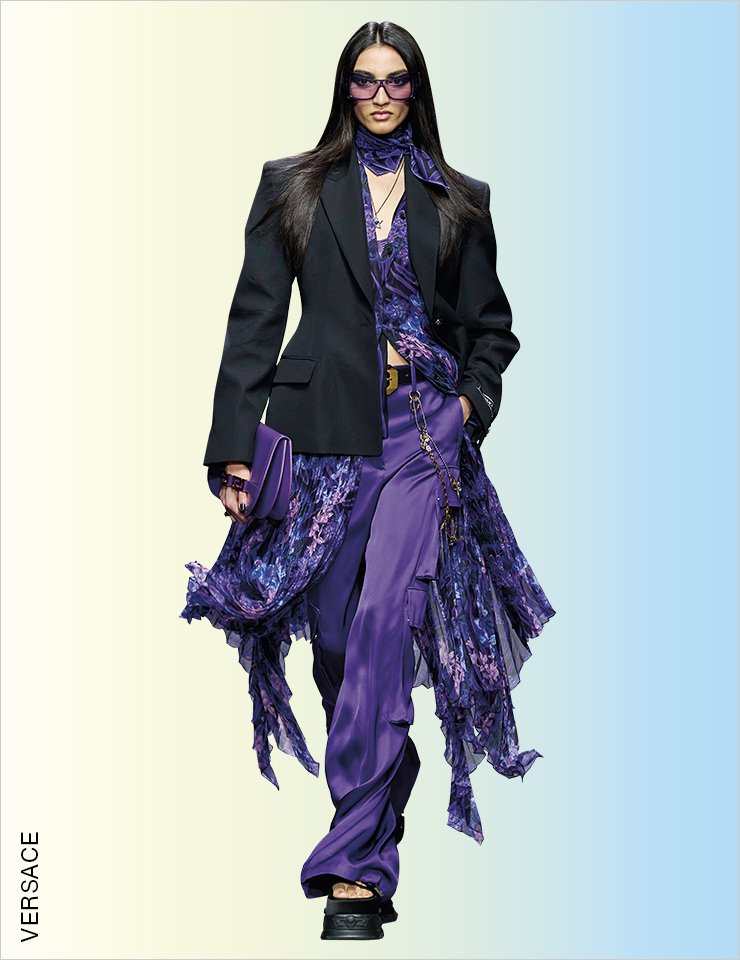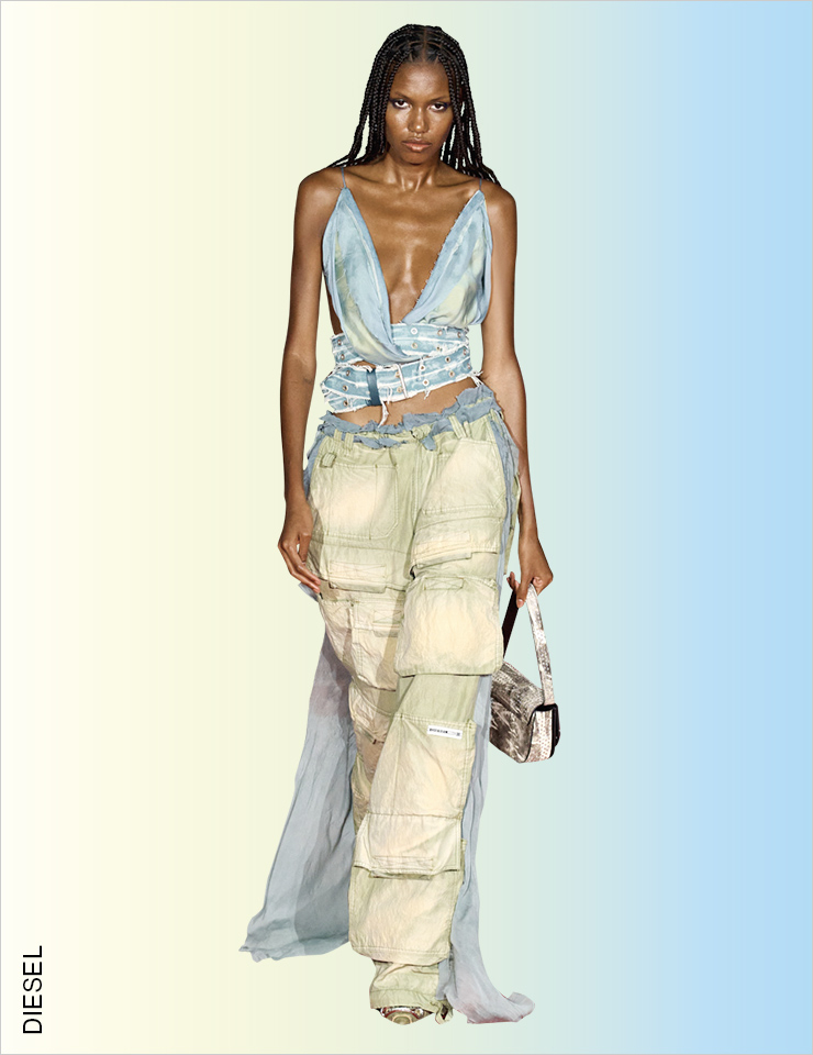 스트리트 감성의 카고 팬츠를 즐기는 가장 쉬운 방법은 Y2K 스타일로 입는 것일 것이다. 하지만 에디터가 선택한 베스트 룩은 우아한 트위드 재킷과 러플 블라우스를 믹스매치한 지방시의 룩! 이처럼 스트리트 풍의 카고 팬츠를 드레시한 아이템과 믹스매치하는 것이 가장 동시대적이다. STREET
