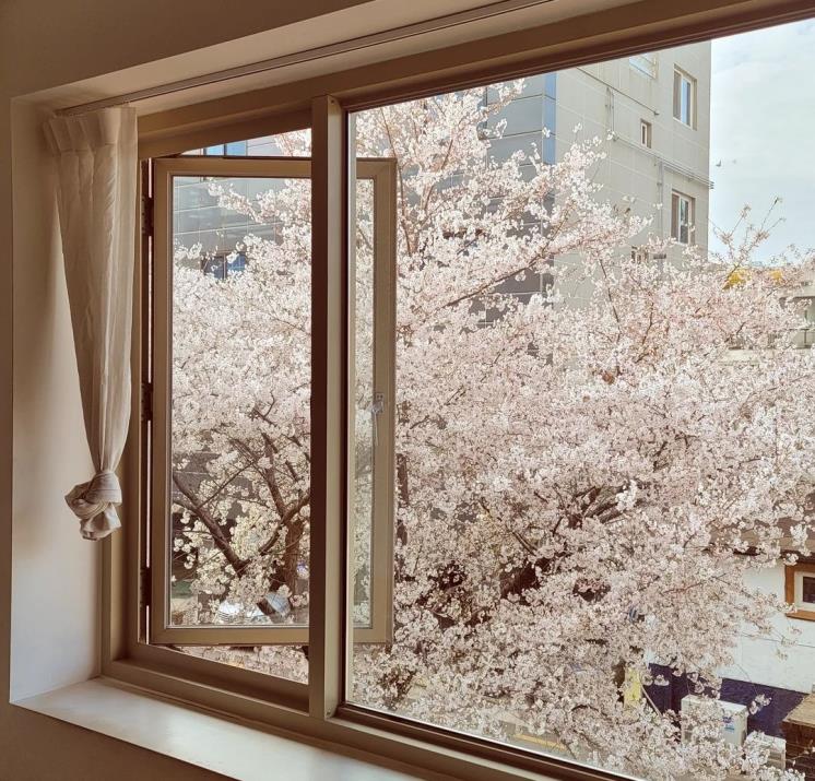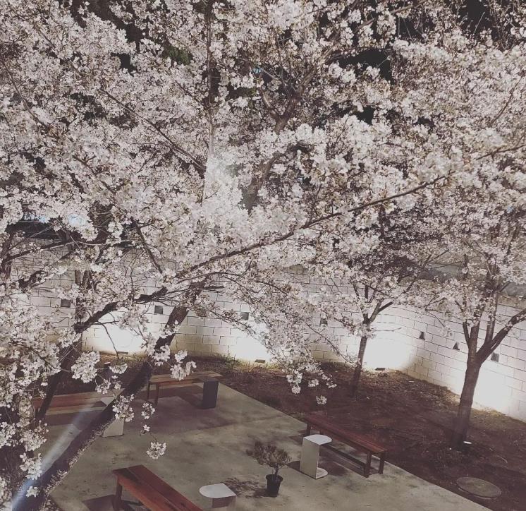 남들처럼 부지런하게 움직이지 못하겠다면 밤에 벚꽃을 보러 가보는 건 어떨까? 대구 카페 아킨니는 주말 토, 일 마감 후 11시까지 벚꽃을 감상할 수 있도록 창문을 열어둔다. 탁 트인 야외에서 쏟아지는 벚꽃비를 맞을 수 있는 것은 물론이다. 가로등에 비친 벚꽃이 주는 황홀함을 느껴보도록.