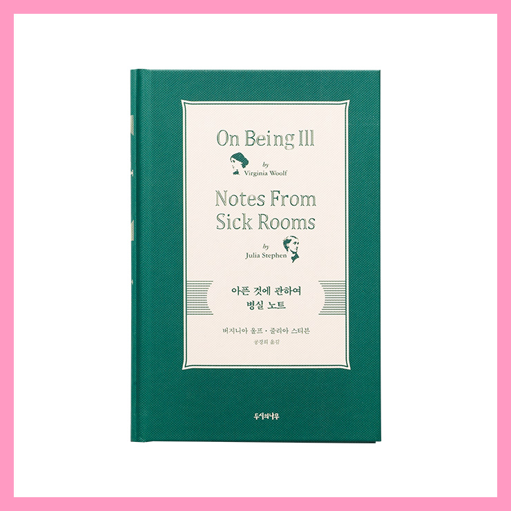 」질병이 정신에 미치는 영향을 우아함을 잃지 않고 탐구하는 버지니아 울프의 에세이 <아픈 것에 관하여>와 간병 요령을 섬세하게 기록한 어머니 줄리아 스티븐의 <병실 노트>를 합본한 책. 병을 앓는 인간의 존엄에 대한 두 작가의 사유와 생전 함께한 시간이 짧았던 그들이 활자 위에서 맞이한 애틋한 재회가 이 책을 특별하게 만든다.