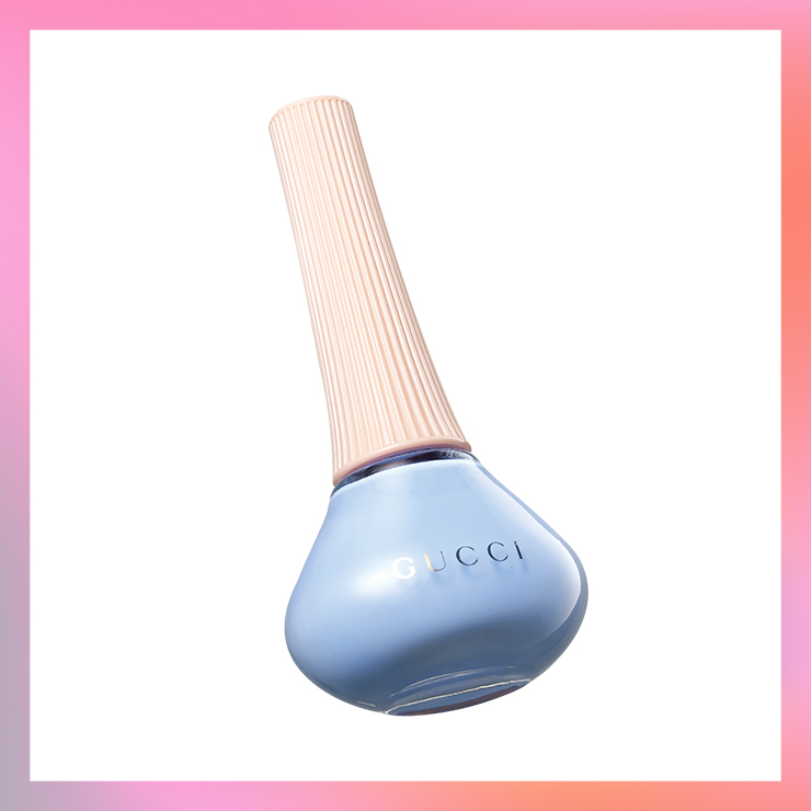체크 포인트 글로시한 광택감을 자랑하는 구찌 뷰티의 네일 래커 라인에 새로운 컬러가 추가됐다. 매끄럽게 발리는 식물성 포뮬러로, 통통 튀는 베이비 블루 컬러가 브러시 자국 없이 깨끗하고 선명하게 발린다.