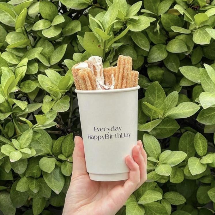 연남동 카페 ‘에브리데이 해피버스데이’ 가게 이름처럼 달콤하고 사랑스러운 맛의 츄러스를 판매합니다. 츄러스를 주문하면 작은 에스프레소 잔에 크림을 담아주고, 초를 부탁드리면 츄러스에 꽂을 수 있도록 라이터와 함께 제공해주신다고 해요.