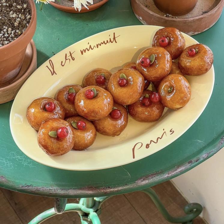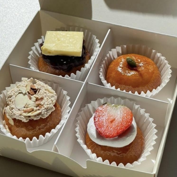 대구의 카페 바닐라 크럼브. 티라미수, 휘낭시에, 마들렌 등 다양한 종류의 서양 구움과자를 판매하는 곳 인데요. 사장님께서 주악을 좋아해서 특별히 개성주악을 판매하고 있어요. 이곳의 개성주악은 위에 올라간 앵두가 포인트.