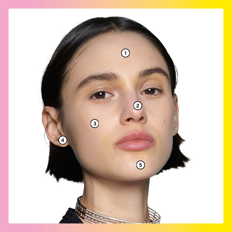 베이스 컬러를 무려 3가지나 담았다고? 가장 밝은 핑크 톤과 옐로 톤을 믹스해 얼굴 전체에 베이스로 바르고, 중심에 있는 태닝 컬러로 음영을 만들어 컨투어링하면 얼굴의 입체감을 살릴 수 있다.