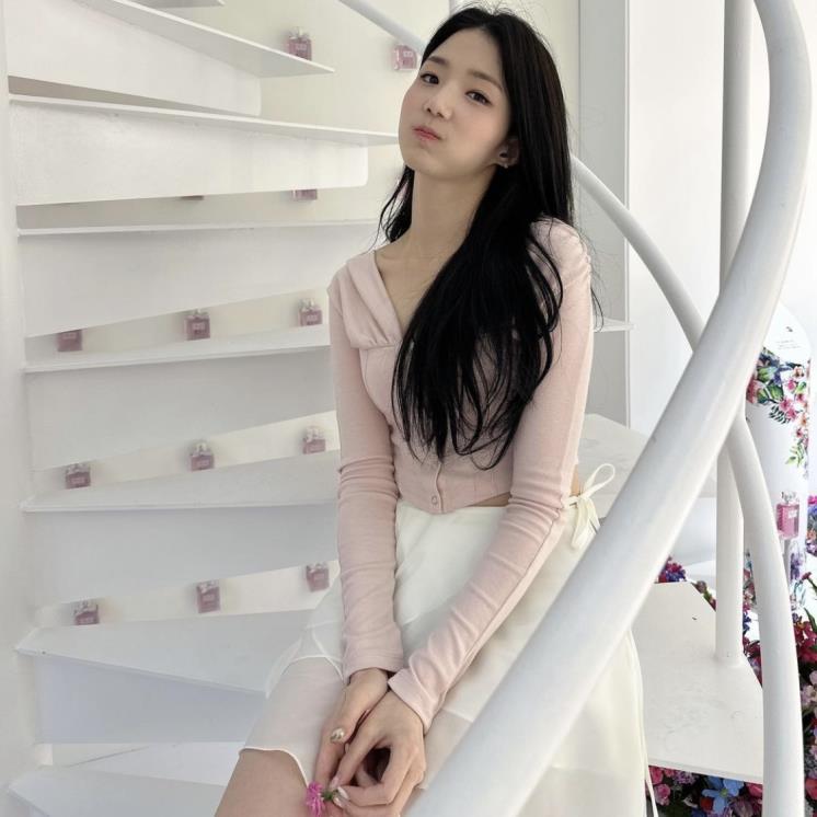 일상에서 활용하기 좋은 페미닌한 발레코어룩을 선보인 신지연. 화사한 화이트 랩 스커트와 핑크빛 탑 모두 발레코어룩으로 핫한 브랜드 ‘낫유어로즈’ 제품이라고 해요.