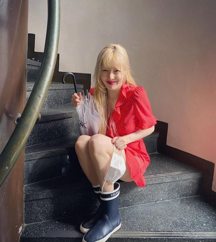 클래식한 패션을 사랑하는 크리스탈은 레인부츠계의 머스트 해브 아이템! 톨 기장의 블랙 헌터 부츠를 택했다. 숏 데님 팬츠에 헌터 부츠는 실패할 수 없는 필승 조합이니, 깔끔한 스타일링을 좋아하는 이들에게 추천할 만한 패션 팁이다.