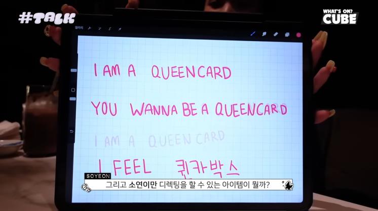 아이들이 미니 앨범 6집 <I FEEL>로 컴백했다. 이번 앨범의 콘셉트는 자존감을 각자의 방식대로 풀어나가는 시리즈물 형식인데, 이를 기념해 소속사는 퀸카 박스를 제작했다고 밝혔다. 퀸카 박스가 더욱 뜻깊은 이유는 아이들의 리더이자 총괄 프로듀서인 전소연이 제작에 직접 참여했기 때문! 전소연은 전체적인 디자인부터 구성품까지 모두 직접 기획하여 만들었는데, 못하는 게 1도 없는 다재다능 캐릭터라는 것을 다시 한번 입증하는 계기가 되었다.