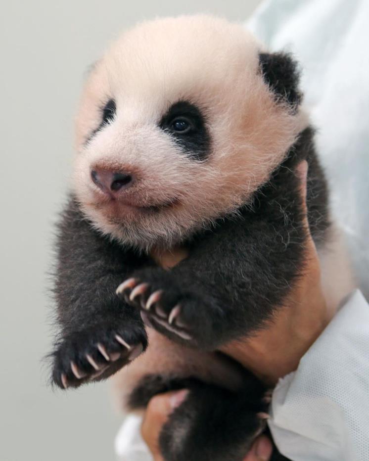 태어났을 당시 키 16.5cm에 몸무게 178g으로 작고 소중했던 푸바오의 100일 때 모습이다. ‘할부지’ 강철원 사육사의 사랑 덕분일까? 출생 100일때에는 오동통한 모습을 자랑 중이다.