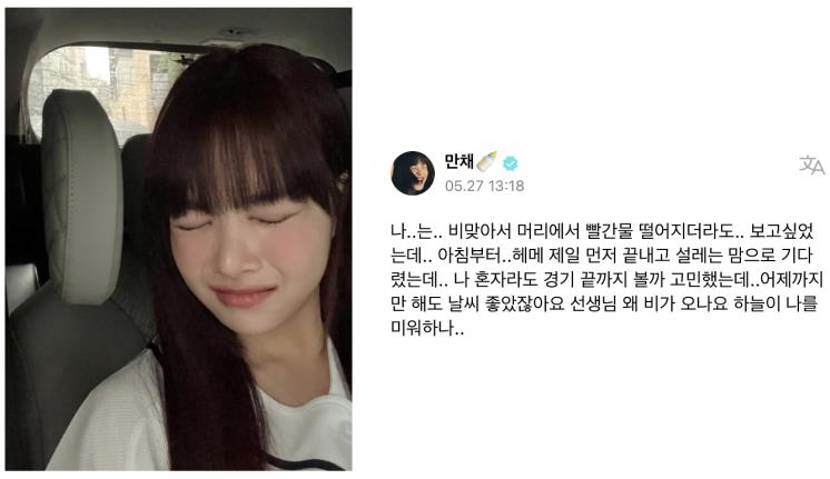 어릴 적부터 두산베어스 팬으로 알려진 ‘두린이’ 은채. 지난달, 우천 취소로 두산베어스 응원 시구∙시타를 하지 못해 뿌엥(?)하는 셀카와 아쉬움이 가득 담긴 글을 남겼다. 여기에 ‘두산 사랑해요 응원해요 저 다음에 꼭 또 불러주세요..🥹’라고 댓글까지 달아, ‘두산 키즈’다운 찐 애정을 보였다. 부디 맑은 날, 두린이에게 다시 한번 시구∙시타 기회가 오길!