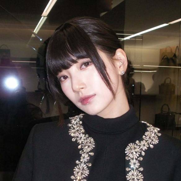 흑단발 머리가 트레이드마크인 르세라핌 채원. 미우미우 로고가 적힌 리본을 한쪽에만 꽂아 상큼하면서 시크한 룩을 보여줬어요.