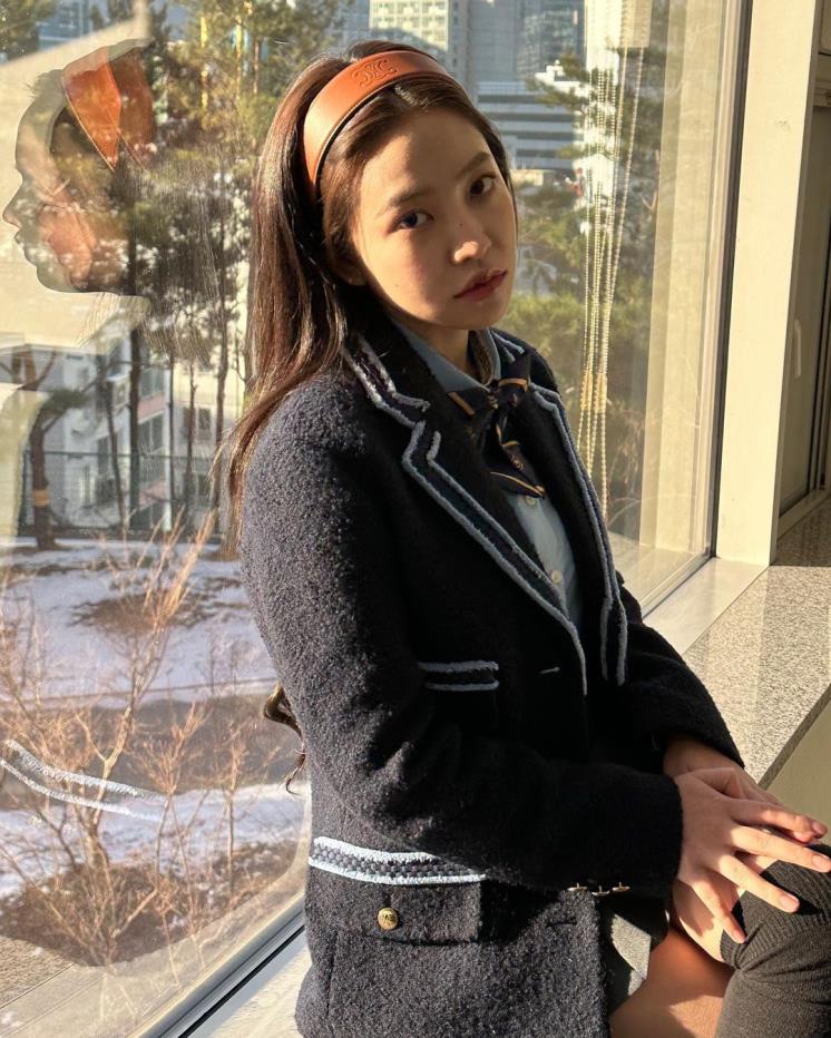 <가십걸> 속 블레어 스타일의 완성이 헤어밴드였듯이, <청담국제고등학교>의 예리 또한 헤어밴드로 고급스러운 하이틴 무드를 완성시켰다. 또한 예리는 ‘청담국제고의 최고 계급’이라는 캐릭터 설정답게 드라마에서 명품을 더한 프레피룩을 선보였는데, 사진에서 예리가 착용한 가방은 셀린느의 설키 숄더백이며, 신발은 프라다의 것이다.