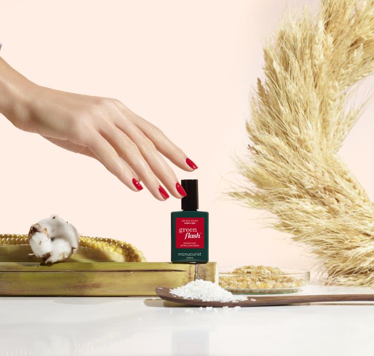 그린 플래쉬는 최대 84%의 식물 베이스 자연 추출물을 함유했습니다. 사탕수수, 옥수수, 감자, 카사바, 목화 등이 주 성분이죠. 또한 12가지 유해 성분을 무첨가했으며, 영국 비건 소사이어티 인증을 받은 비건 네일입니다. 하지만 컬러의 퀄리티에는 지장이 가지 않게끔 지속력은 물론 풍부한 발색과 광택에도 힘을 썼죠.