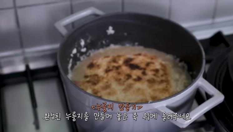 4. 완성된 누룽지를 죽에 섞어 부드럽게 만든다
