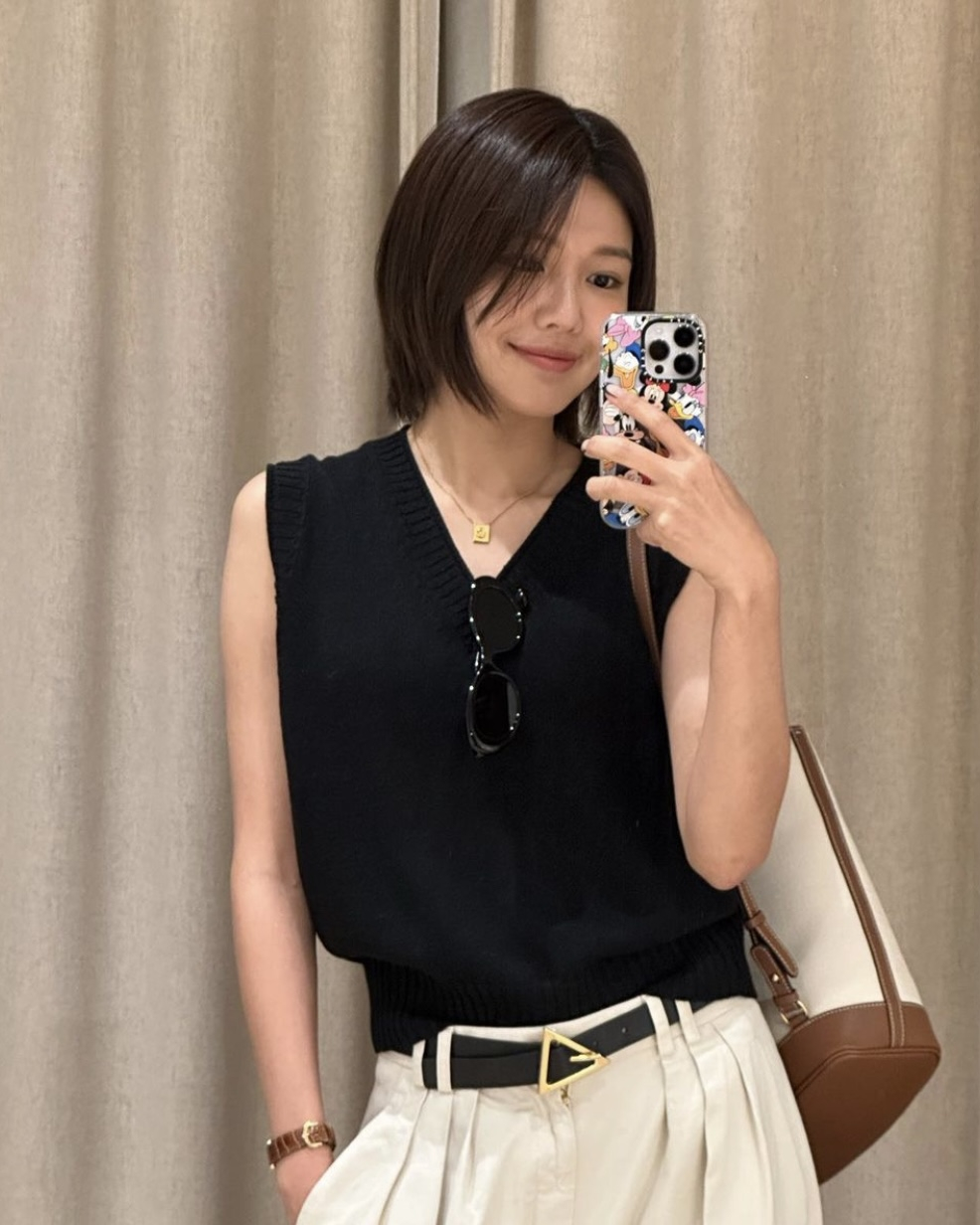 심플하지만 고급스러운 룩을 즐기는 소녀시대 수영 역시 ‘올드 머니 룩’과 잘 어울리는 셀럽이라고 할 수 있어요. 블랙 니트 탑에 베이지 톤의 팬츠 그리고 보테가 베네타의 벨트를 착용해 포인트를 준 룩이 여유 있어 보이면서도 클래식하네요.