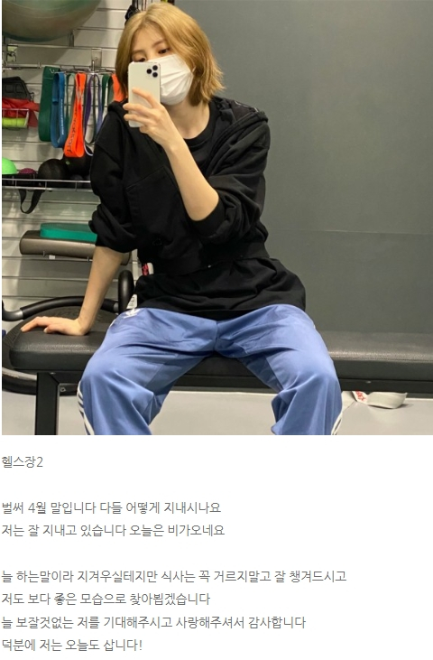 라이브 도중 한 팬이 “언니처럼 마르려면 어떻게 해야 하냐”고 묻자 그녀는 단호하게 "나처럼 마르면 안 된다. 부디 건강을 지켜달라"고 말을 전했다. 이어 “하는 일이 내면도 내면이지만 외관을 비추는 일을 하기 때문에 살을 빼는 거지 그게 아니었으면 저도 정상체중을 유지했을 것”이라며 “미의 관점이 절대 마르고 뚱뚱해서가 되면 안 된다. 입고 싶은 옷이 몸에 딱 맞으면 좋지만 건강까지 헤쳐가면서 살을 빼지 않았으면 한다. 건강해야 예쁜 것"라며 자신의 생각을 밝혔다.