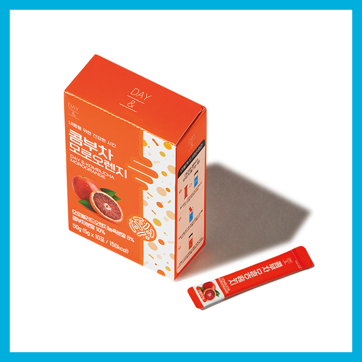 비타민 C와 각종 영양 성분이 풍부한 모로오렌지 농축 분말을 담았다. 귤 정도의 부드러운 산미가 특징.