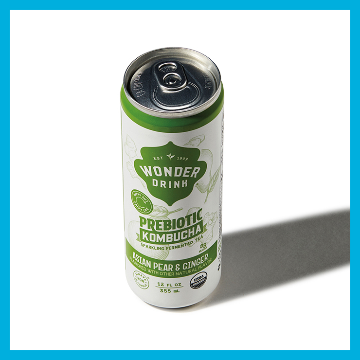 진저에일을 좋아한다면 아묻따 좋아할 것! 콤부차 장인 브랜드 원더드링크의 캔 타입 콤부차로, 유기농 배즙과 생강이 어우러진 맛.