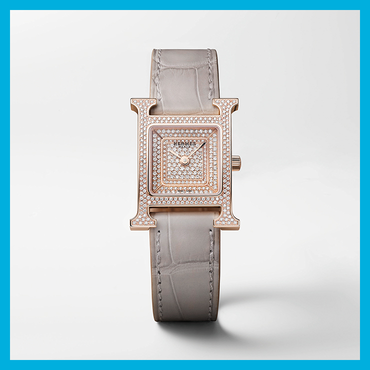 로즈 골드와 스틸 버전으로 재해석된 아이코닉 H아워 컬렉션. 내부 다이얼을 가득 채운 다이아몬드가 특징이다.