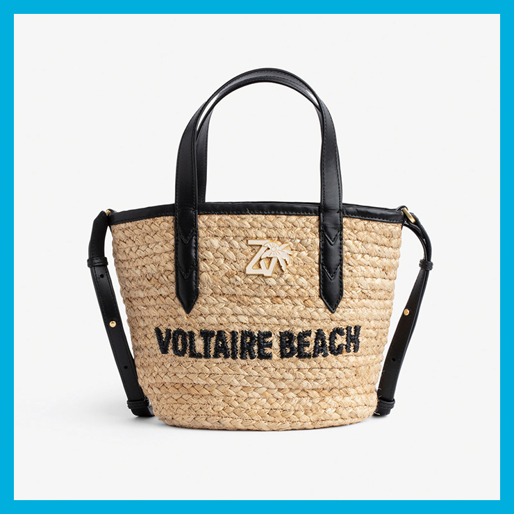 볼테르 해변을 상징하는 오프화이트 컬러와 골드 메탈 로고가 포인트인 라피아 백. 탈착 스트랩으로 더욱 실용적이다.