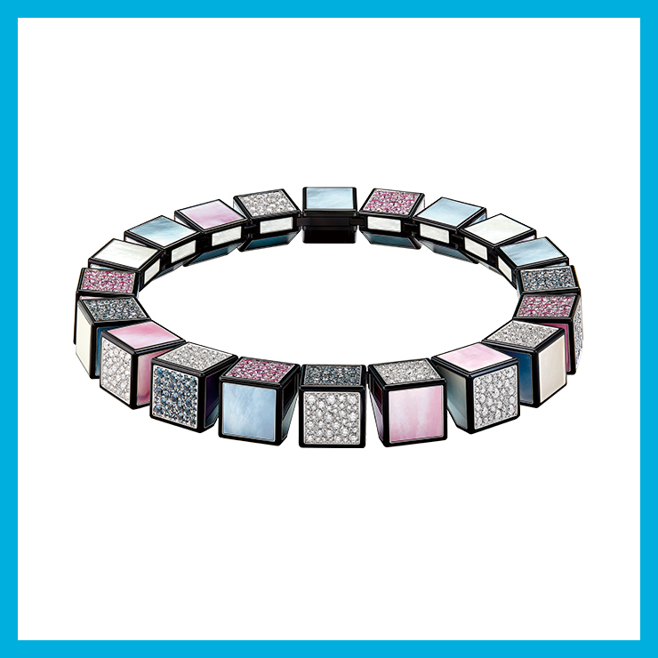 큐브 퍼즐을 해체해 만든 듯한 유니크한 디자인이 돋보인다. 부쉐론만의 크리에이티비티를 녹여낸 링, 브레이슬릿, 이어링 등을 선보였다.
