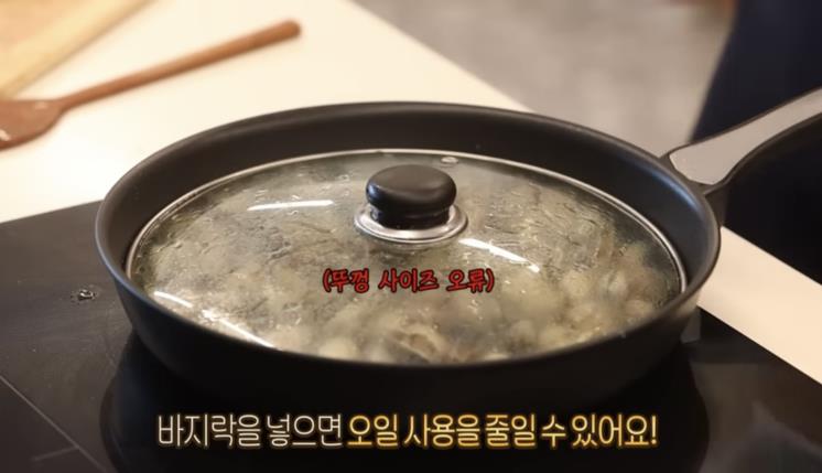 2. 마늘 향이 올라오면 바지락을 넣고 볶아준 뒤 뚜껑을 덮어둔다.