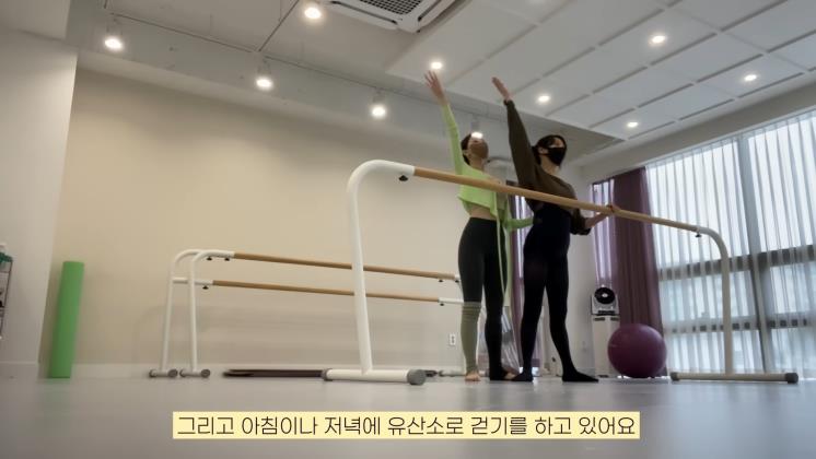한달 전부터 다시 운동을 시작한 윤승아. 운동을 해야 행복감을 느낀다는 그녀는 발레와 필라테스, 유산소운동을 한다고 전했다. 최근엔 발레를 하며 넓어진 흉곽을 줄이는데 집중하고 있다고. 수유하느라 한층 올라간 어깨를 내리고 등을 바로 펴는 동작 위주로 운동한다고 전했다. 발레는 보기보다 하는 것이 힘든 운동으로 알려져 있는데 그래서일까? 윤승아 역시 발레를 하고 난 후 신기하게도 얼굴 붓기가 싹 가라앉은 모습을 볼 수 있었다. 식사 후에는 반려견 틴틴, 다람이와 함께 빠른 걸음으로 동네를 도는 유산소 운동을 30분 했다. 그러니까 하루 적어도 2회 이상 운동을 하는 셈이다.