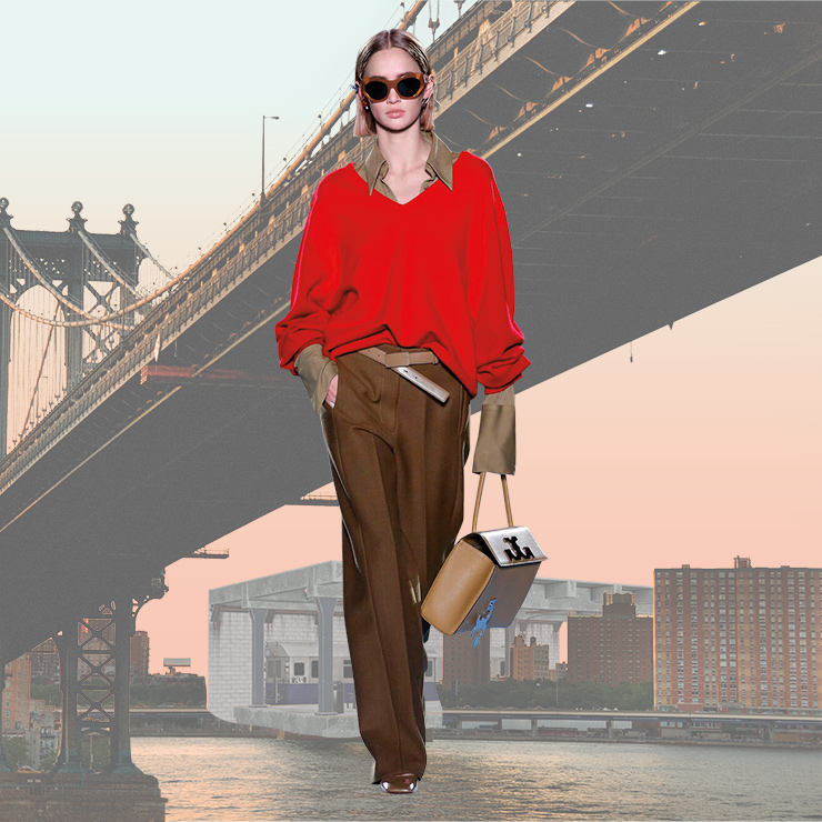 레드 컬러에 부담을 느껴왔는가? 토리버치처럼 비슷한 계열인 베이지나 캐멀, 브라운 컬러를 함께 매치해 레드의 강렬함을 중화해보자.