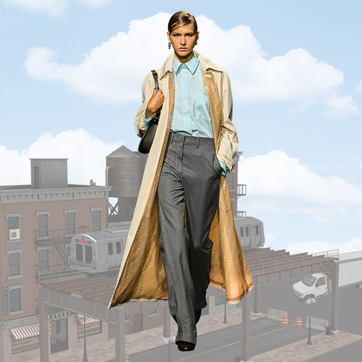이번 시즌, 미우미우의 런웨이엔 일상에서 활용하면 좋을 매력적인 드레싱이 가득하다. 포멀한 코트를 드레스다운한 이 룩을 보라!