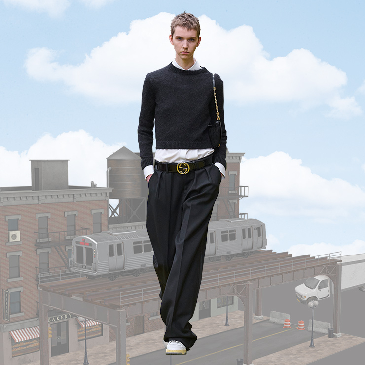 구찌 런웨이의 수많은 룩 중 에디터들의 가장 큰 사랑을 받은 피스는 다름 아닌 베이식 룩. 미니멀한 스웨터 룩과 오버사이즈 트렌치 룩이 바로 그것이다.