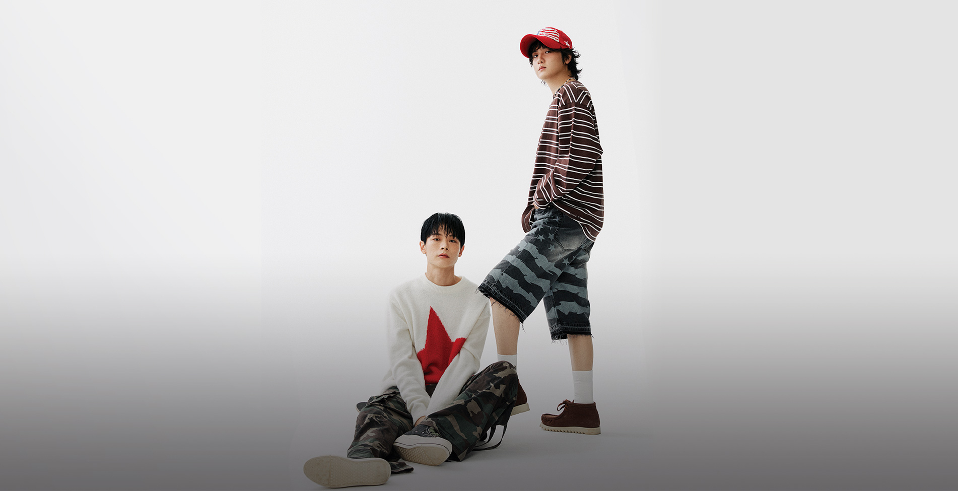 (조원상)티셔츠 7만8천원 카부츠. 트랙 팬츠 70만원대 니들스. 슈즈, 반지 스타일리스트 소장품. (최상엽)티셔츠 8만7천원 카부츠. 코듀로이 팬츠, 슈즈, 반지 스타일리스트 소장품.