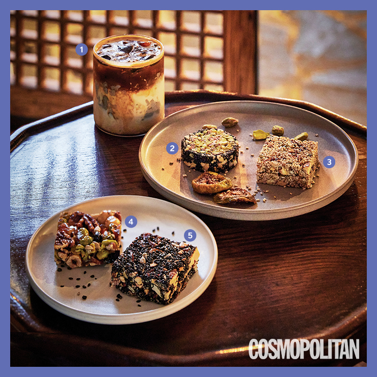 ②얇게 편 강정으로 만든 시그너처 메뉴 ‘피스타치오 깨말이’.