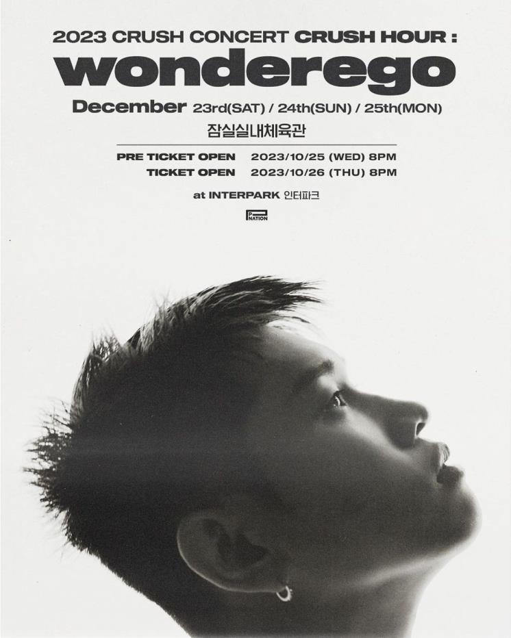 오는 14일 정규 3집 원더이고(wonderego) 발매를 앞둔 크러쉬. 작년에 이어 올해도 연말 콘서트를 개최한다. 작년에 열린 2022 CRUSH ON YOU TOUR ‘CRUSH HOUR’는 팬들의 성원에 힘입어 앙코르 콘서트가 열었을 정도로 ‘유잼 보장’ 콘서트이기도 하다. 들으면 다 아는 히트곡부터 화려한 퍼포먼스는 물론. 깜짝 게스트로 방탄소년단 제이홉과 지코, 자이언티, 악뮤가 나와 현장이 뒤집어졌다는(?) 후문. 크러쉬 콘서트 <CRUSH HOUR : wonderego>, 2023.12.23(토)~2023.12.25(월)