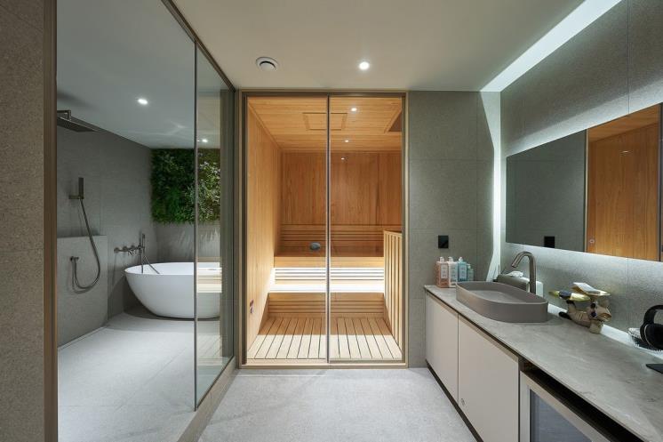 사우나를 고스란히 담은 솔로사우나 레포. 아로마 오일을 함유한 물을