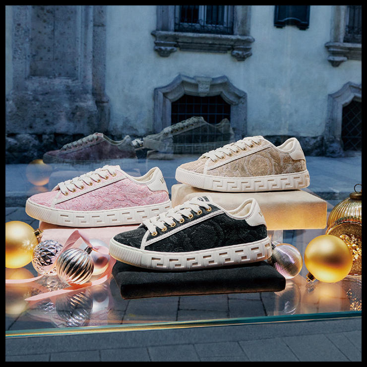 베르사체 바로코 그레카 스니커즈 톤온톤 자카르 소재로 디자인된 로 톱 스니커즈가 유연하고 편안한 착화감을 선사한다.